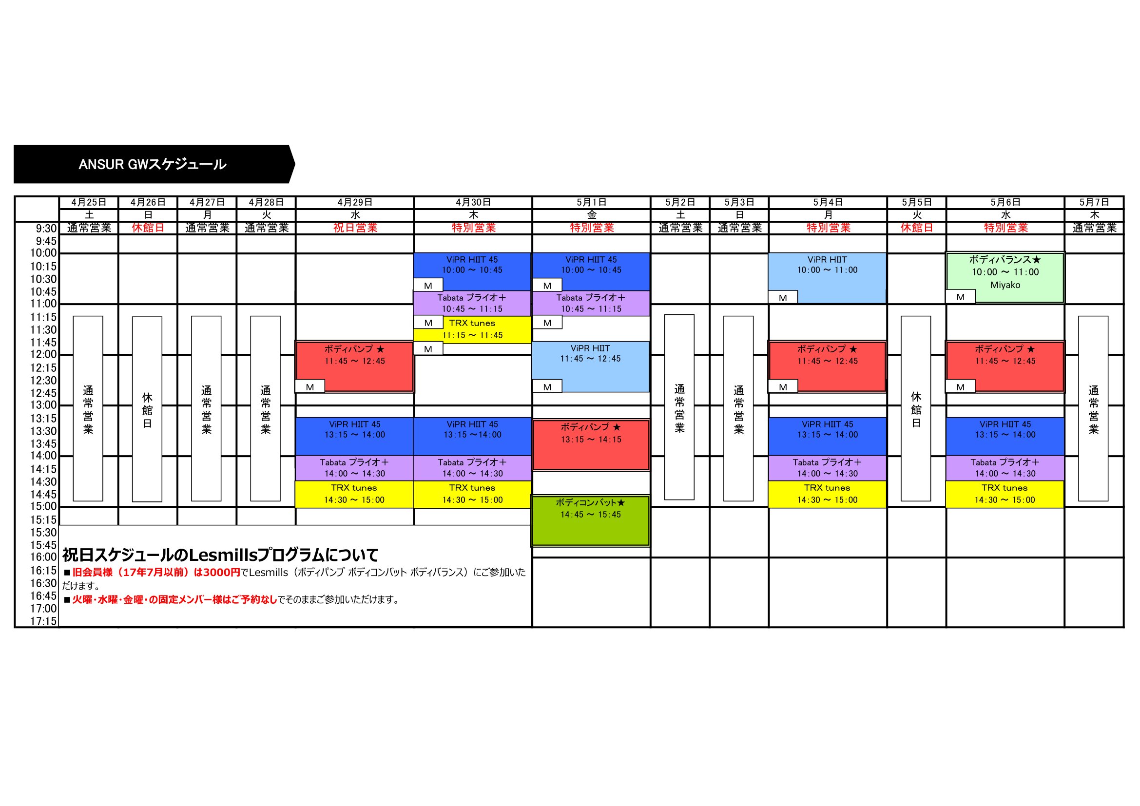 4月25日~5月6日までのスケジュールを出しました。
